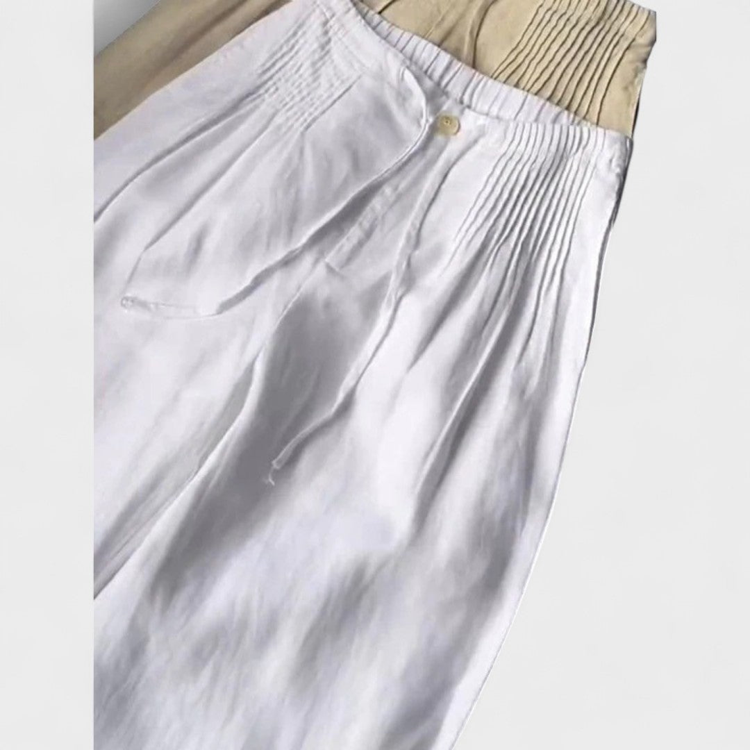 Lengvo kritimo, plačių kojų kelnės iš natūralių pluoštų mišinio. Elastingas juosmuo su reguliuojamu raišteliu patogiai priglunda ir prisitaiko prie figūros, o laisvas siluetas nevaržo judesių. Minimalistinis dizainas lengvai derinamas tiek su marškiniais, tiek su megztiniu – nuo darbo dienos iki savaitgalio.