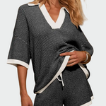 Bežinis komfortas yra komplektas, kuris derina laisvą stilių ir praktiškumą. Minkšta tekstūra ir elastingas pritaikymas suteikia komfortą, o modernus dizainas jį daro idealiu tiek atsipalaidavusiems, tiek elegantiškiems įvaizdžiams.
