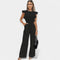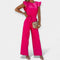Šis visas kostiumas derina eleganciją ir komfortą, išsiskirdamas detalėmis, tokiomis kaip drugelio formos rankovės ir diržas, kuris pabrėžia liemenį. Idealiai tinka oficialiems ar kasdieniams renginiams, tai yra būtinas pasirinkimas.