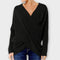 ✔️ Stilingas V-žandikaulio dizainas: Modernus kryžminis V-žandikaulis ir asimetrinė apačia suteikia ypatingą akcentą šiam megztiniui.