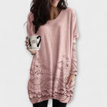 Riley - Spausdintas Patogus Megztinis yra naujas tavo mėgstamiausias atsipalaidavusios elegancijos pasirinkimas. Su banguotu kraštu, išraiškingais gėlių siuvinėjimais ir per dideliu siluetu, jis derina prabangias detales su kasdieniu patogumu.