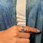 Mūsų specialus Monikos žiedas yra puikus aksesuaras bet kokiai aprangai! 3 žiedų ir segtuko derinys daro jį tikru dėmesio centru.