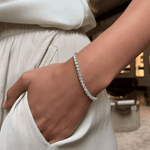 Išryškinkite savo eleganciją su Rivière apyranke, kuri turi blizgančių akmenų rinkinį. Padengta 14k auksu, ši sofistikuota apyrankė siūlo laiko patikrintą glamūrą ir rafinuotą prisilietimą. Ideali bet kokiam renginiui, ji prideda tobulą prabangos ir stiliaus mišinį prie jūsų aksesuarų kolekcijos.