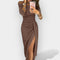 Su rafinuotu kirpimu ir lengvu kritimu, ši suknelė išskiria laikui nepavaldžią eleganciją. Ideali oficialioms progoms ar stilingiems vakarams, ji be vargo sujungia komfortą ir stilių.