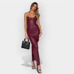 Minkštas Oda Midi Suknelė su Šiuolaikine Stiliaus Išraiška