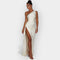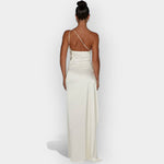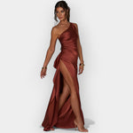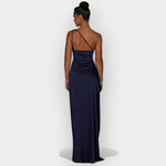Ši suknelė skleidžia subtilią prabangą su lygiu satino audiniu ir elegantiška linija. Ideali vakarinėms pasirodymams ir ypatingoms progoms, reikalaujančioms rafinuotumo ir stiliaus.