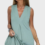 Pabrėžkite savo natūralų eleganciją su šia be rankovių suknele žemės žalios spalvos. Puikiai tinka kasdienėms išvaizdoms, taip pat ir atsipalaidavusiems susitikimams su draugais.