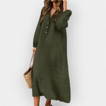 Vėsus ir lengvai dėvimas lino suknelė, siūlanti komfortą ir subtilų elegantiškumą. Idealu kasdieniams pasirodymams su stiliumi nuo ryto iki vakaro.