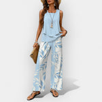 Šis komplektas siūlo lengvą vasaros stilių su šaltu pritaikymu ir šiuolaikiniu dizainu. Puikiai tinka kelionėms, išvykoms ar kasdieniams pasirodymams su nepretenzinga elegancija.