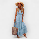 Atraskite absoliučią bohemišką eleganciją su suknele, kuri sujungia laisvą Ibizos jausmą su šiuolaikiniu akcentu.